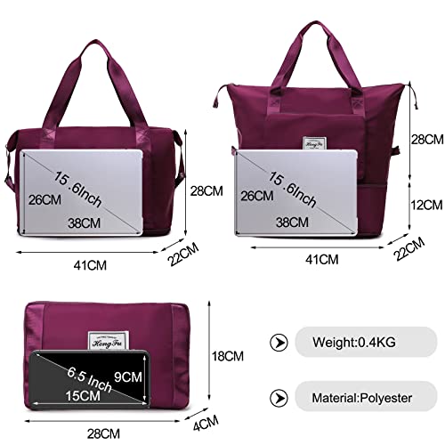 FANDARE - شنطة سفر، شنطة يد رياضية قابلة للطي، شنطة يد كبيرة توت لقضاء الليل في الخارج للنساء والرجال وعطلة نهاية الأسبوع، شنطة مريض تصلح للسباحة والتدريب مع جيب للأحذية من فاندار, ارجواني داكن، قماش بوليستر