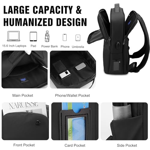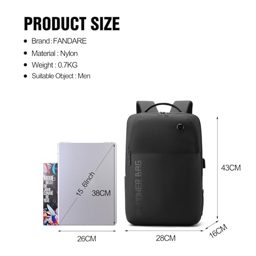 FANDARE - شنطة ظهر للاب توب للرجال والنساء من البولي يوريثين، شنطة ظهر مدرسية متعددة الاغراض للعمل والسفر والاستخدام اليومي والجامعة مع جيبين رئيسيين