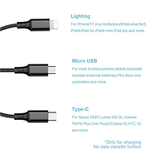 - 【متعدد الوظائف 】يحتوي كابل الشحن المتعدد 3 في 1 على 3 موصلات شحن مختلفة، مما يعني أن كابل واحد يمكنه تلبية احتياجات شحن أجهزتك اليومية.