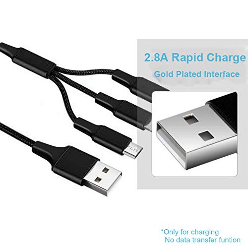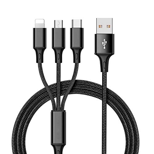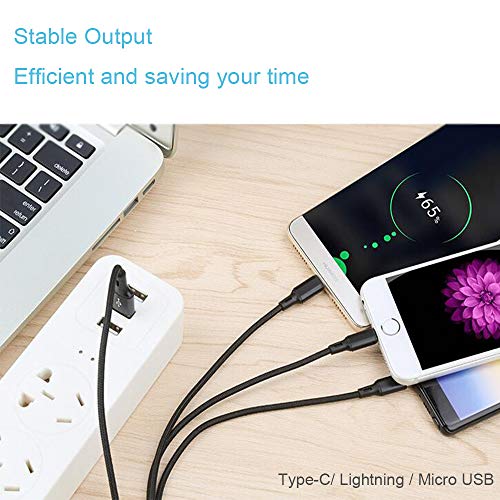 FANHAO - كابل سمارت 3 في 1 من النايلون من فانهاو سريع الشحن بثلاثة منافذ نوع C ومايكرو وآيفون - لون أسود