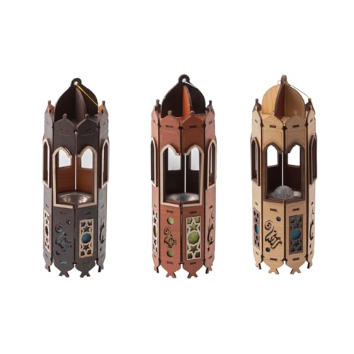 LC - عروض رمضان من فانوني - (3 قطع) احصل على 3 فوانيس رمضان خشبية خفيفة وحجم رائع 20 سنت، 3 قطع فانوس رمضان متعدد الالوان احصل على عرض كامل FM2 (موديل 5)