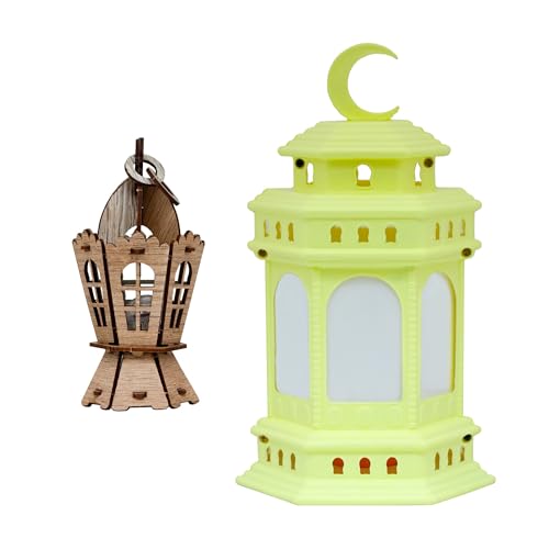 Generic - عروض رمضان من فنوني - فانوس بلاستيك جميل مقاس 25 سنتي اغاني وانوار + فانوس رمضان خشب 14 سنتي مضئ عند الحركة والهز (موديل 4)