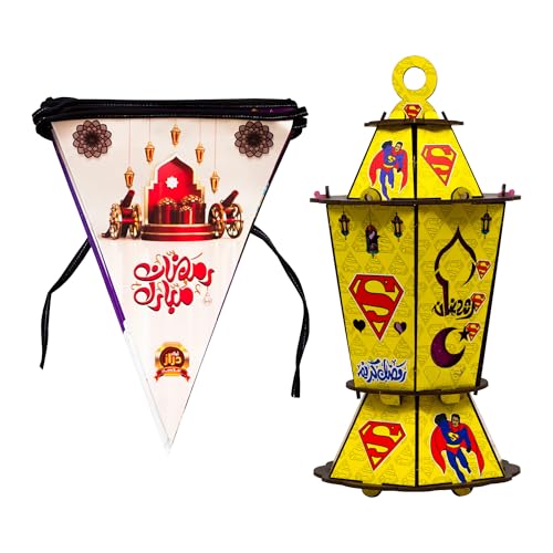 Generic - عروض رمضان من فنوني - فانوس رمضان خشب كبير مقاس 30 سنتي اغاني رمضان وانوار رائعة + فرع زينة رمضان مقاس 5 متر من فنوني F65 (موديل 3)