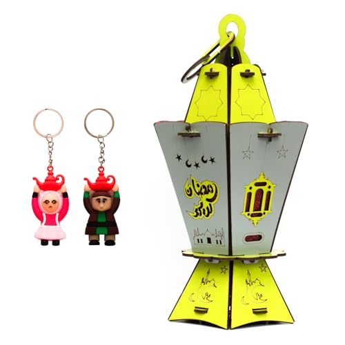 Generic - عروض رمضان من فنوني - فانوس رمضان خشب كبير مقاس 30 سنتي اغاني رمضان وانوار رائعة + 2 شخصيات فانوس رمضان ميدالية جلد رائع جدا F37 (موديل 2)