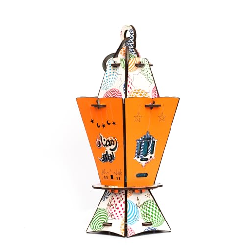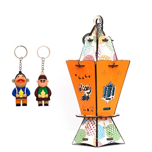 Generic - عروض رمضان من فنوني - فانوس رمضان خشب كبير مقاس 30 سنتي اغاني رمضان وانوار رائعة + 2 شخصيات فانوس رمضان ميدالية جلد رائع جدا F37 (موديل 7)