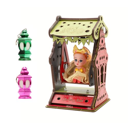 Generic - فانوس رمضان خشبي كبير الحجم مقاس 30 سم، يصدر أغاني رمضان وإضاءة رائعة + وميداليتان جلديتان رائعتان للغاية على شكل شخصيات رمضانية من فنوني، F48 (موديل 6)