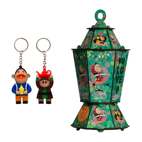 Generic - عروض رمضان من فنوني - فانوس رمضان خشب كبير مقاس 30 سنتي اغاني رمضان وانوار رائعة + 2 شخصيات فانوس رمضان ميدالية جلد رائع جدا F66 (موديل 4)