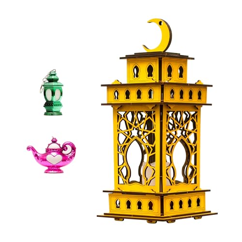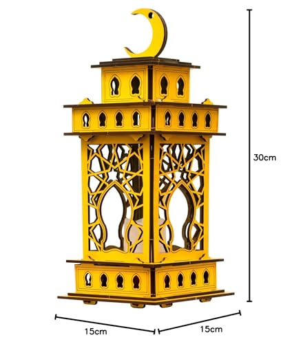 LC - عروض رمضان من فانوني - فانوس رمضان خشبي كبير الحجم 30 سنت اغاني رمضان وانوار كول + 2 فانوس رمضان مضيء ورائع للغاية F14 (موديل 1)