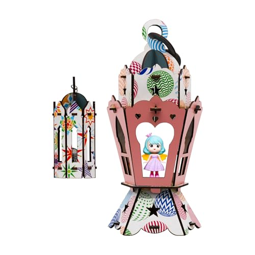 Generic - عروض رمضان من فانوني - فانوس رمضان خشبي كبير الحجم 27 سنتي مع أغاني رمضان وأنوار رائعة + 1 قطعة فانوس رمضان خشبي مقاس 15 سنتي يضيء عند التحرك والضحك -FK02 (موديل 11)