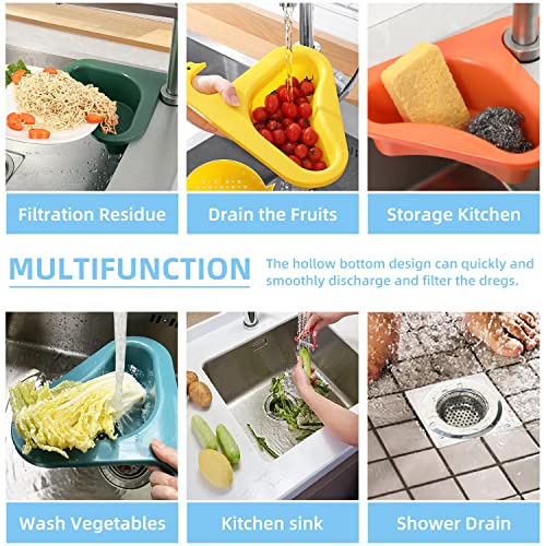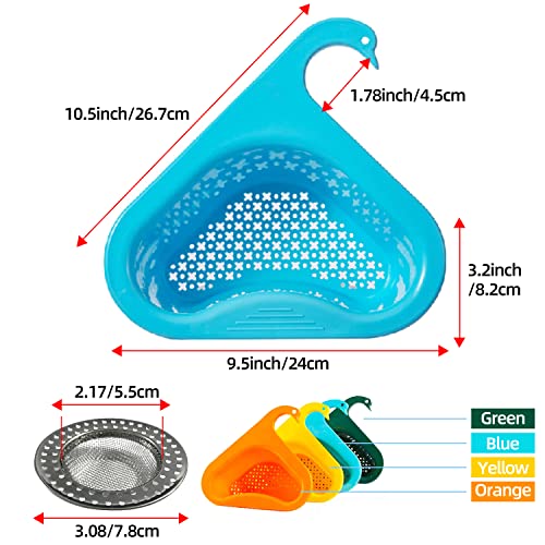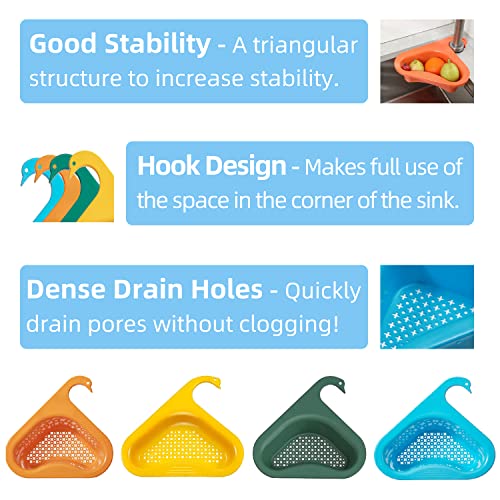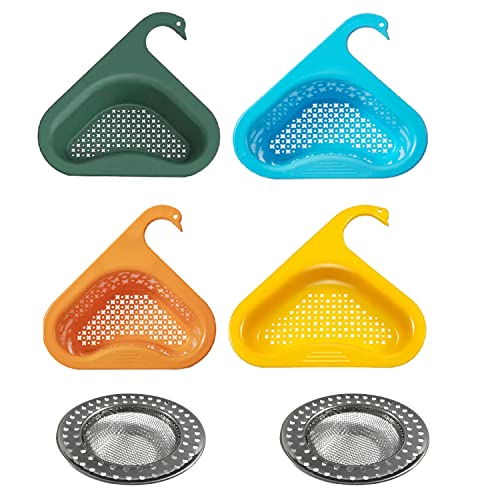Fantabuy - سلة مصفاة حوض مثلثة الشكل متعددة الوظائف بتصميم على شكل بجعة للمطبخ، مصفاة معلقة بدون ثقب قابلة لاعادة الاستخدام مع 2 فلتر مصفاة حوض، مناسبة لحوض المطبخ، 4 قطع
