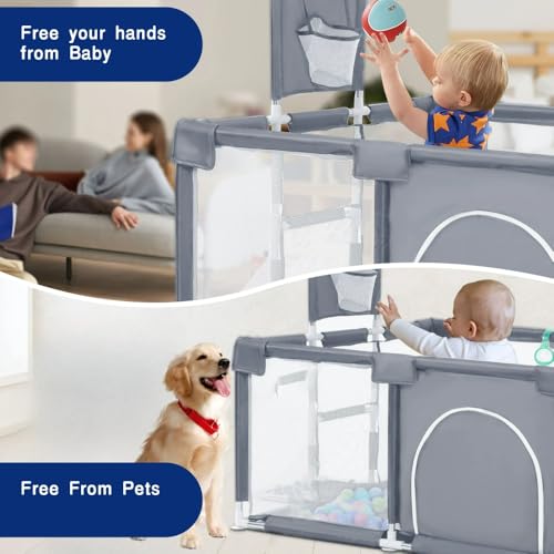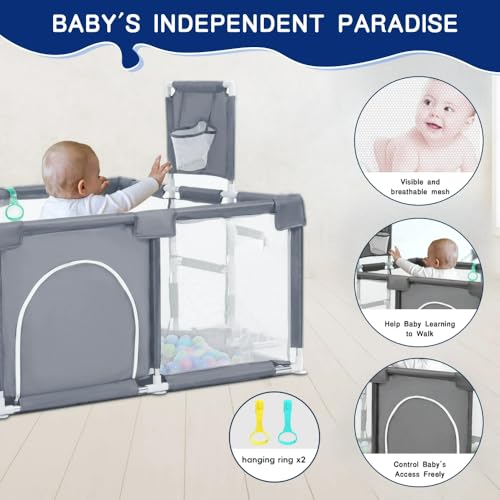 Generic - قفص لعب للاطفال من فانتاستيك كيدز تويز، شبكة تهوية شديدة التحمل، هيكل معدني متين، مع 50 كرة وحلقات تعليق، قابلة للطي، 182 × 122 × 64 سم، لعمر 6 اشهر الى 7 سنوات