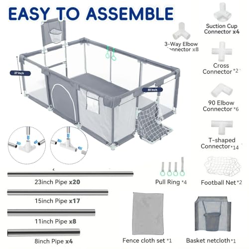 - ٢) ميزات متعددة: يتضمن سلة كرات ملونة، وحلقات تعليق، وسلة تخزين جانبية، وحلقة كرة السلة للترفيه المتكامل