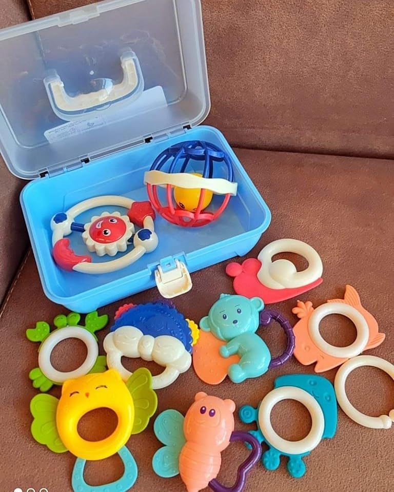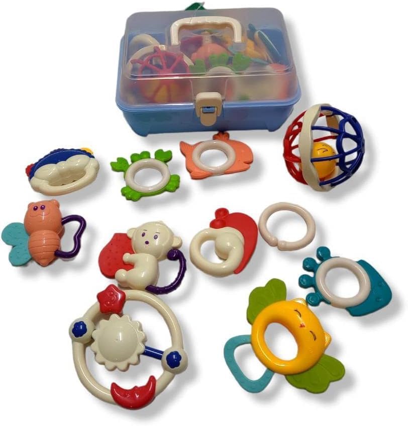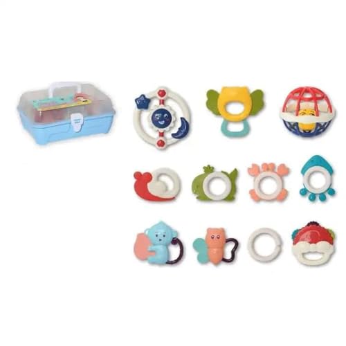 Generic - صندوق العاب للاطفال من فانتاستيك كيدز تويز، كرة مطاطية ناعمة وخشخيشة (عبوة من 11 قطعة) (ازرق) من فانتاستيك كيدز تويز