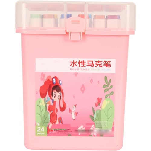 Generic - اقلام تحديد بطرف مزدوج للاطفال من فانتاستيك كيدز رسم بلاستيكية بالوان مائية 48 لون صندوق بينك الوردي