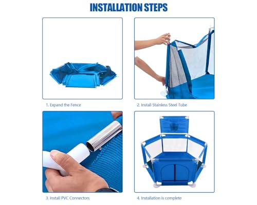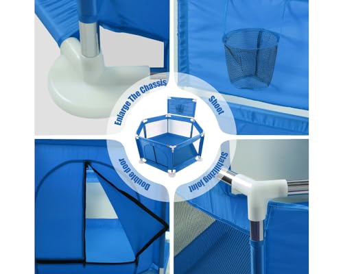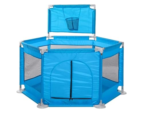 Generic - قفص اللعب للاطفال والرضع قابل للطي مع حلقة كرة سلة،مركز للانشطة مثبت على الارض،يوفر حماية وامان للاطفال والرضع اثناء اللعب،كود 129منFantastic-Kids-Toys(128سم×66.5سم×70سم)ازرق