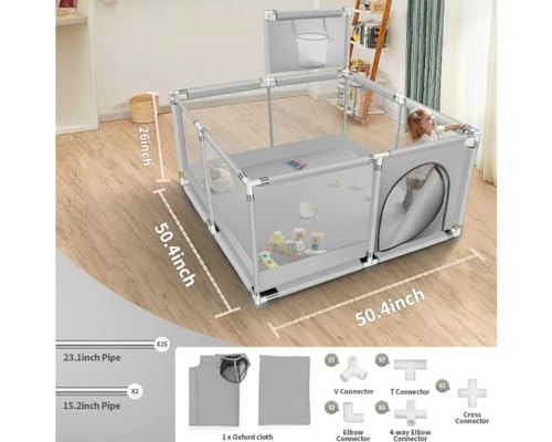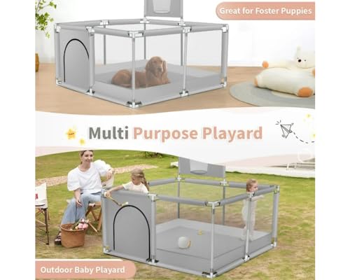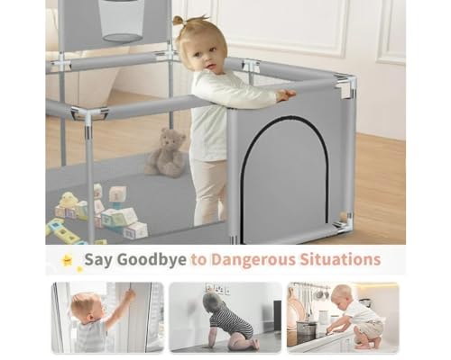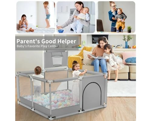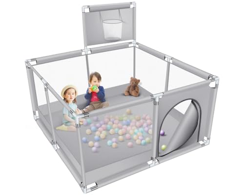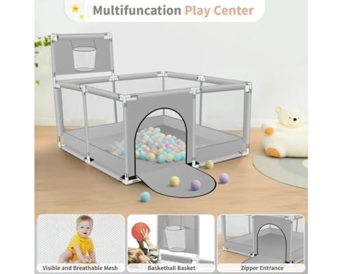 Generic - قفص لعب للاطفال قابل للطي مع حلقة كرة سلة من فانتاستيك كيدز، يثبت على الارض، حماية وامان للاطفال والرضع اثناء اللعب، كود 159 من فانتاستيك كيدز تويز (130 سم × 130 سم × 65 سم) لون رمادي فحمي