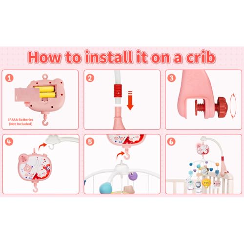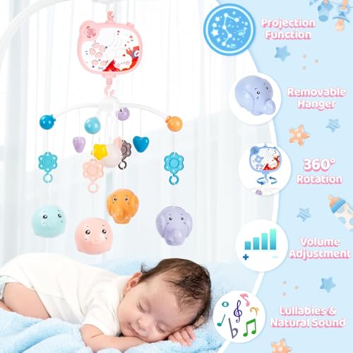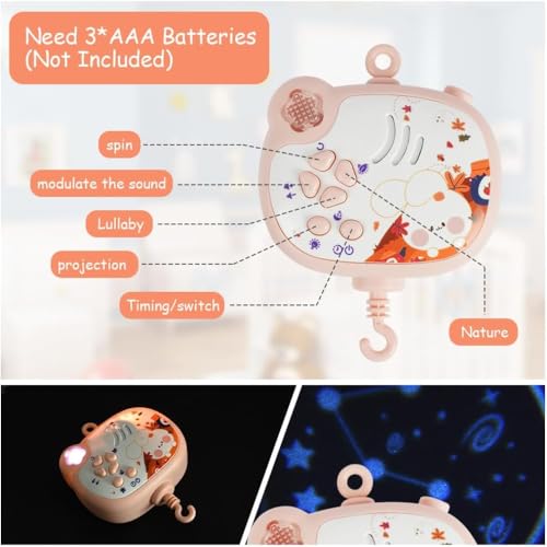 LC - لعبة متنقلة موسيقية للأطفال فانتاستيك تويز مع جهاز عرض ووظيفة توقيت أضواء وشخشيخة دوارة معلقة، جهاز تحكم عن بعد، ألعاب سرير حديثي الولادة للأطفال من سن الولادة فما فوق 668-16، لون وردي