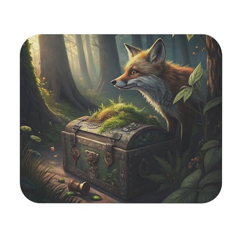 Generic - قاعدة ماوس بتصميم ثعلب فانتسي - سجادة مكتب كنز غابة ساحرة، قاعدة ماوس غير قابلة للانزلاق للكمبيوتر واللاب توب