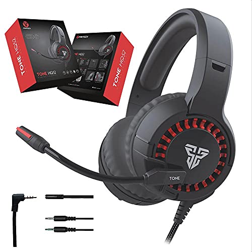 Fantech - سماعات العاب بجاك واحد - بميكروفون تصلح ببموبايل والبلاى ستيشن - بدون أضاءة ليد فانتيك HQ52 TONE، سلكي، فوق الاذن، اسود واحمر
