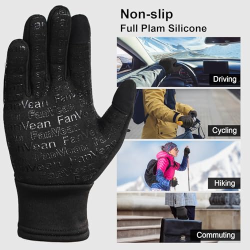 FanVean - فانفيان قفازات عمل، قفازات للشتاء، للرجال والنساء: شاشة لمس 360 درجة، مقاومة للماء والرياح، حرارية للثلج والتزلج وركوب الدراجات النارية والتمارين، هدايا عيد الميلاد الدافئة، اسود، MV6