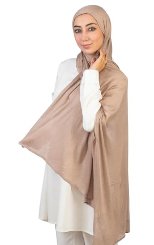 Farah - فرح سكارف قطن جيرسي كويتي للنساء - كافيه-190 × 75 سم