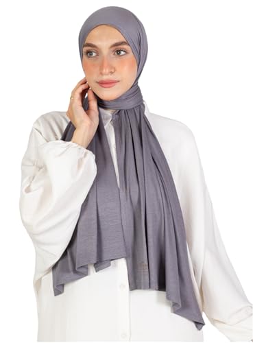 Farah - فرح سكارف قطن سادة للنساء - رمادي غامق- 180 × 60 سم