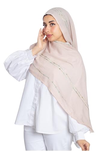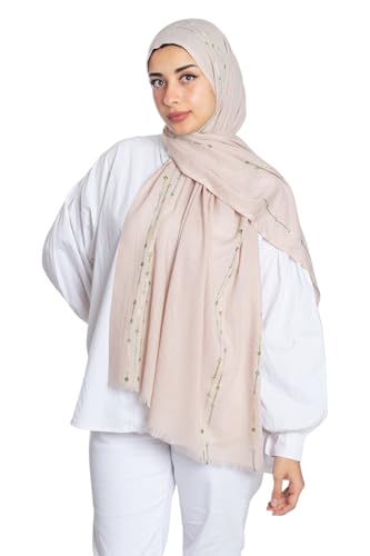 Farah - فرح سكارف قطن مطرز خفيف للنساء - بيج - 180 × 70 سم