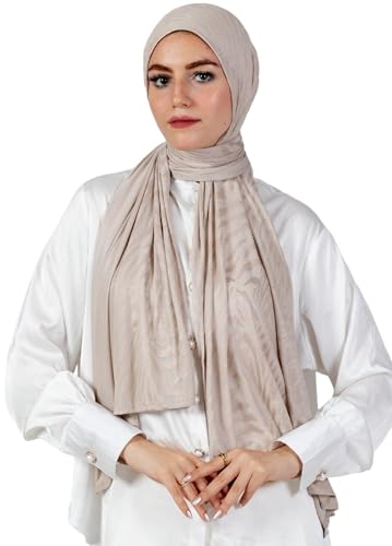 Farah - سكارف جاكار قطن للنساء من فرح، بني فاتح (لايت كافيه)، 1.9 م ×70 سم