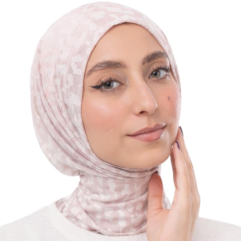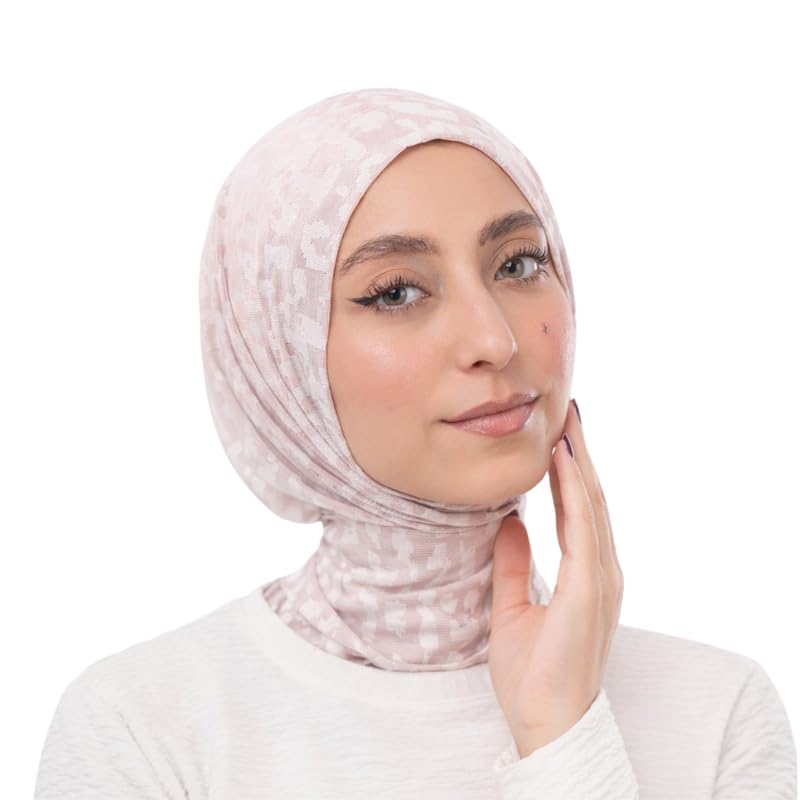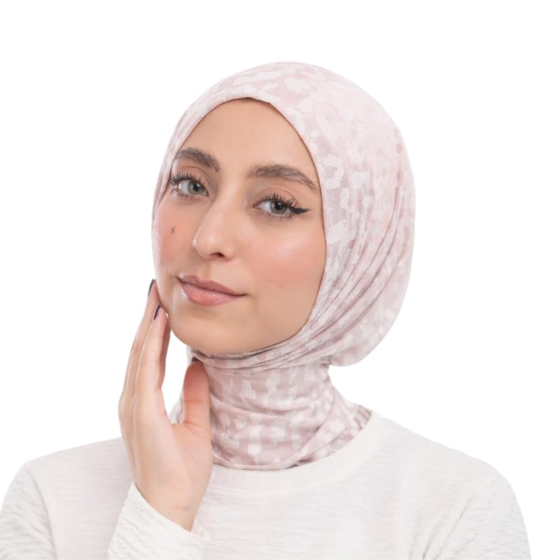 Farah - فرح حجاب ليكرا تابايا تايجر جاكار مع كابسين مقاوم للصدا للنساء، بينك فاتح، 57 × 24 سم