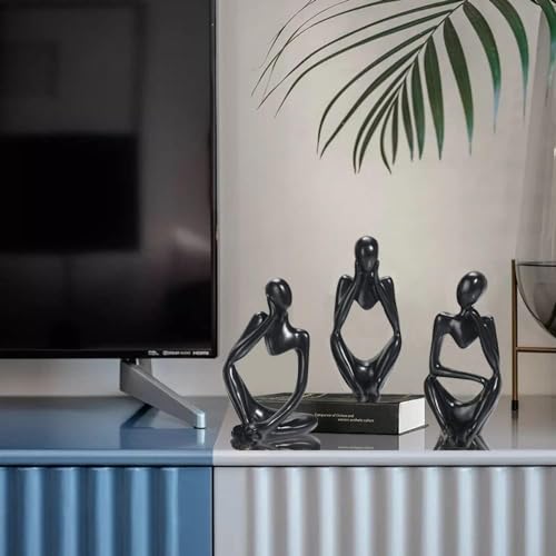 FARAMIR STORE - تمثال مفكر تجريدي زخرفي فني من الراتنج بتصميم عصري لديكور المنزل والمكتب وغرفة المعيشة ورف الكتب والطاولة من فارمير ستور 3 قطع حجر أسود