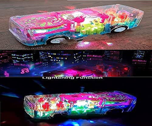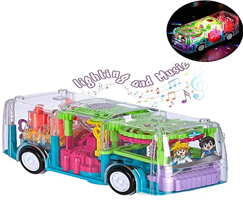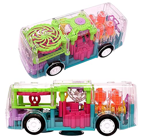 Farewell - Of Your Search - لعبة حافلة ثلاثية الأبعاد شفافة تدور 360 درجة ميكانيكية محاكاة الصوت والضوء للأولاد والبنات من عمر 2-5 سنوات ناقل التروس