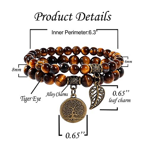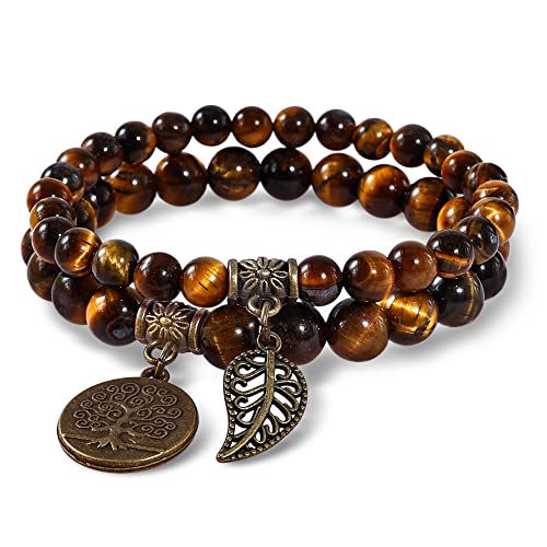 Farfume - فارفيوم اساور شاكرا السبعة للنساء لتخفيف التوتر بتصميم شجرة الحياة واوراق الشجر مجموعة كريستالية مقاس واحد من الستانلس ستيل والعقيق