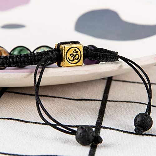 Farfume - سوار شاكرا علاجي للنساء من فارفوم، من الكريستال والأحجار الكريمة الطبيعية، لليوجا، مزود بحجر ريكي، مجموعة من اساور مزدوجة, 7 inches, حجر