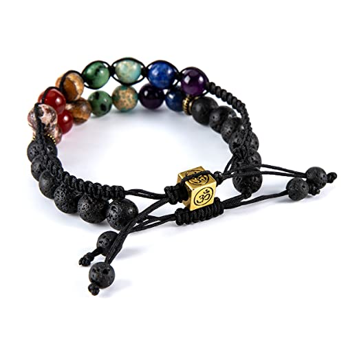 Farfume - سوار خرز باحجار كريمة استشفائية طبيعية لتخفيف التوتر والتامل بالشاكرات الـ7 واليوجا، مجوهرات للنساء - مقاس 8 ملم