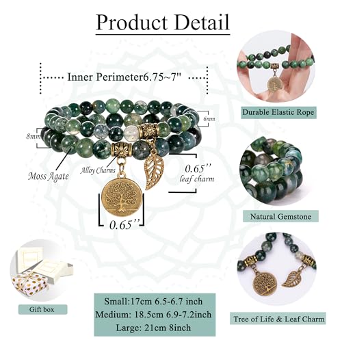 Farfume - سوار خرز مرن باحجار شبه كريمة طبيعية بدلاية شكل شجرة الحياة وورقة شجر، اساور شاكرا مليئة بطاقة لتخفيف التوتر للنساء