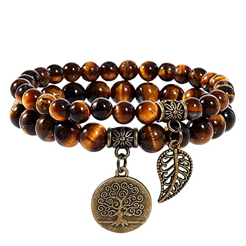 Farfume - سوار شاكرا علاجي للنساء من فارفوم الكريستال والأحجار الكريمة الطبيعية لليوجا مزود بحجر ريكي مجموعة اساور مزدوجة معدن