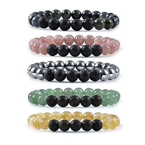 Farfume - فارفيوم سوار من حجر طبيعي - لؤلؤ للنساء - دائري 8 ملم - مجموعة 3 اساور كريستال الاحجار الكريمة