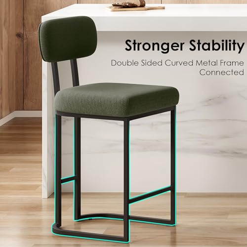 Farini - طقم كراسي بار عصرية بتصميم منتصف القرن الحديث، مرتفعة مع مسند ظهر لمنصة المطبخ من فاريني، لون أخضر، قطعتان