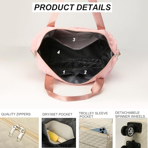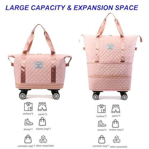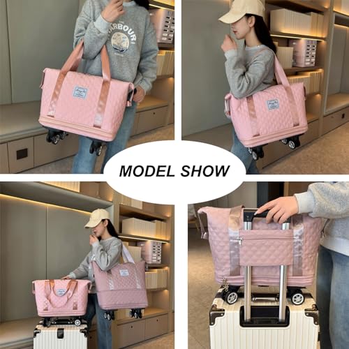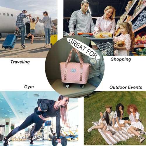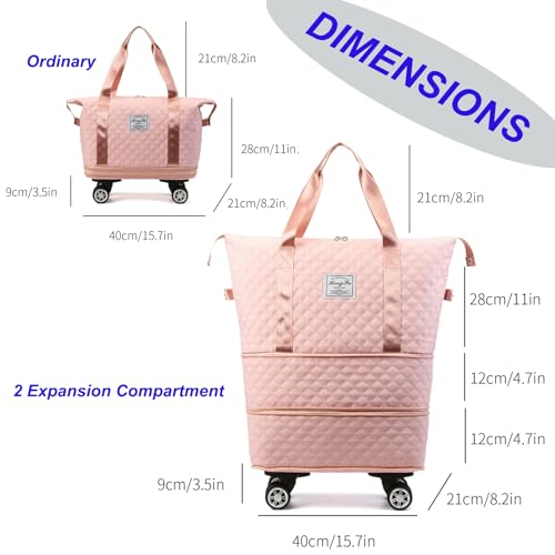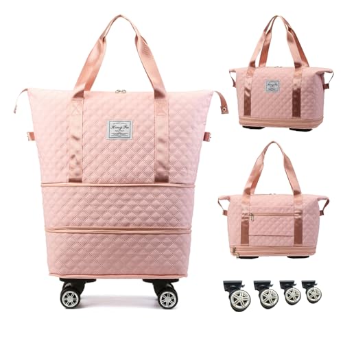 FARMARK - شنطة دفل للسفر من فارمارك قابلة للتوسيع مع عجلات دوارة قابلة للفصل لعطلة نهاية الاسبوع، شنطة كتف قابلة للطي