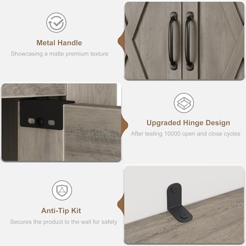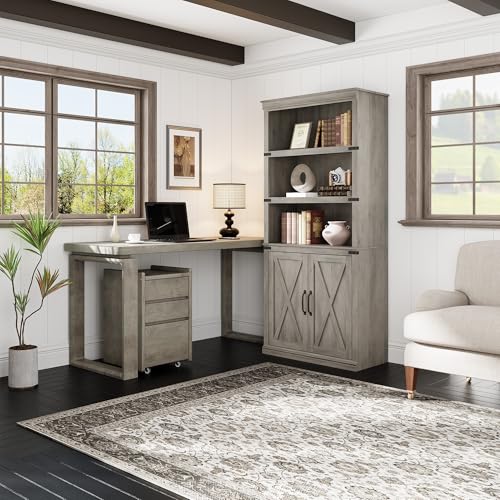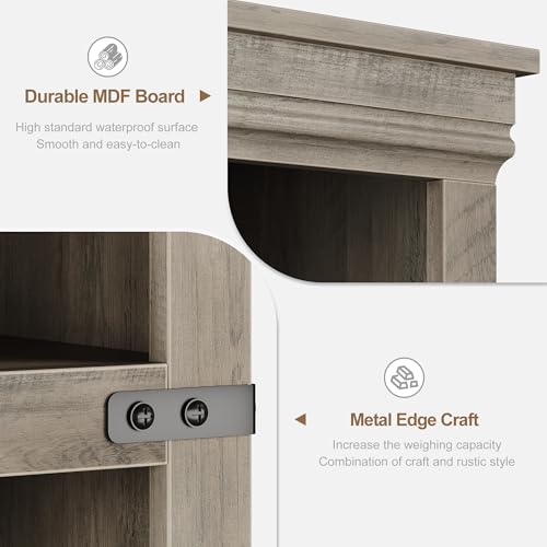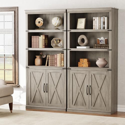 GarveeHome - ارفف كتب رمادية مع ابواب، تتميز خزانة الكتب القائمة على الارض بخمسة ارفف واسعة للعرض والتخزين، خزانة كتب بطول 69 انش للمكتب المنزلي وغرفة المعيشة وغرفة النوم