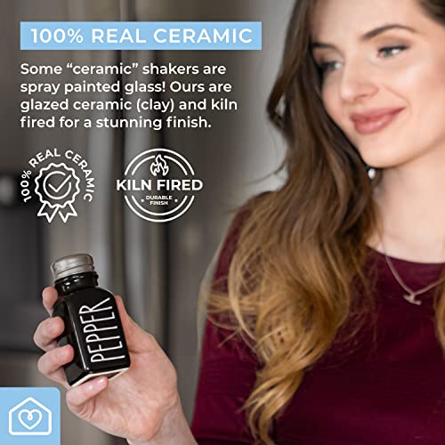 Oasisgalore - طقم هزازات ملح وفلفل سيراميك من فارم هاوس مع أغطية إضافية هزازات فلفل أسود وملح أبيض مع غطاء للمطبخ