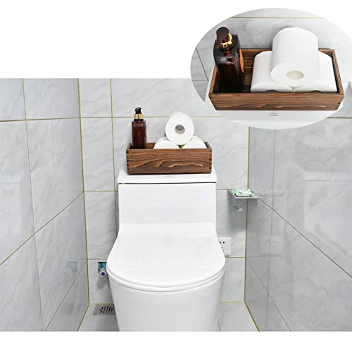 JFFCESTORE - صندوق ديكور للحمام بتصميم ريفي بتصميم ريفي مضحك، سلة تخزين وخزان ورق التواليت، صندوق خشبي مزخرف مثالي لطاولة المطبخ وسطح الطاولة وادوات المزرعة (بني)
