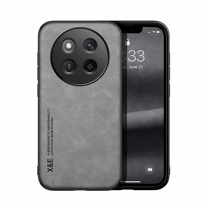 FASCINATION - جراب موبايل مغناطيسي من الجلد الصناعي الفاخر، جراب خلفي ناعم ونحيف متوافق مع موبايل هونر X9c من فاسينيشن (لون رمادي)