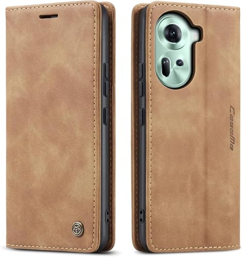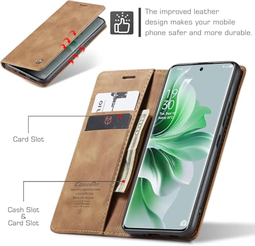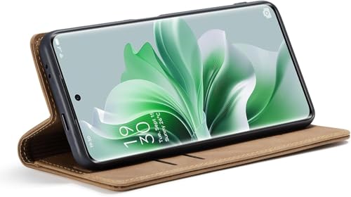 FASCINATION - جراب موبايل متوافق مع اوبو رينو 11 شبكة الجيل الخامس 5G جلد افقي متعدد الوظائف فتحة للبطاقات وحامل ومحفظة لموبايل 5G بني منقلب