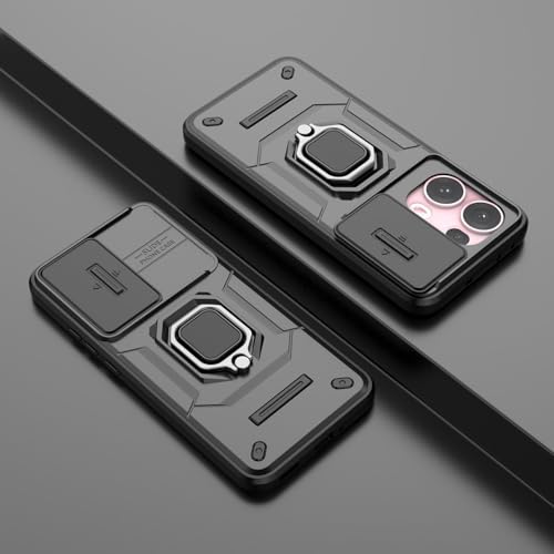 FASCINATION - جراب موبايل عالمي منزلق من بولي يوريثين مقاوم للحرارة من فاسينيشن متوافق مع موبايل أوبو رينو 5G شبكة الجيل الخامس 5G مع جراب مضادة للصدمات وحلقة معدنية مقاومة للصدمات (أسود)