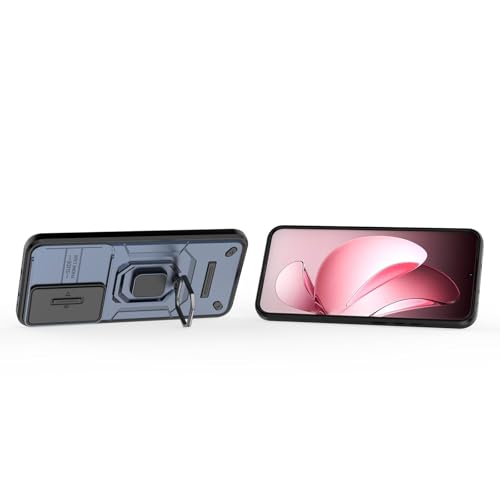 FASCINATION - جراب موبايل متوافق مع موبايل أوبو رينو 13 برو شبكة الجيل الخامس 5G شامل منزلق من البولي يوريثين الحراري + بولي كربونات مضاد للصدمات مع حلقة معدنية مقاومة للصدمات من فاسينيشن (أزرق)