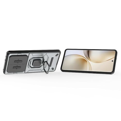 FASCINATION - جراب موبايل متوافق مع موبايل ريلمي 14 برو شبكة الجيل الخامس 5G من البولي يوريثين المقاوم للحرارة + البولي كربونات مع حلقة معدنية مقاومة للصدمات من فاسينيشن (رمادي)