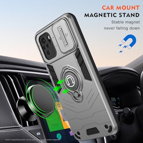 FASCINATION - فاسينيشن جراب موبايل متوافق مع ريدمي نوت 10 4G (10S) درع كاميرا منزلق، مزيج ناعم وصلب حلقة معدنية مدمجة دوارة 360 درجة لموبايل (رمادي)، بولي كربونات
