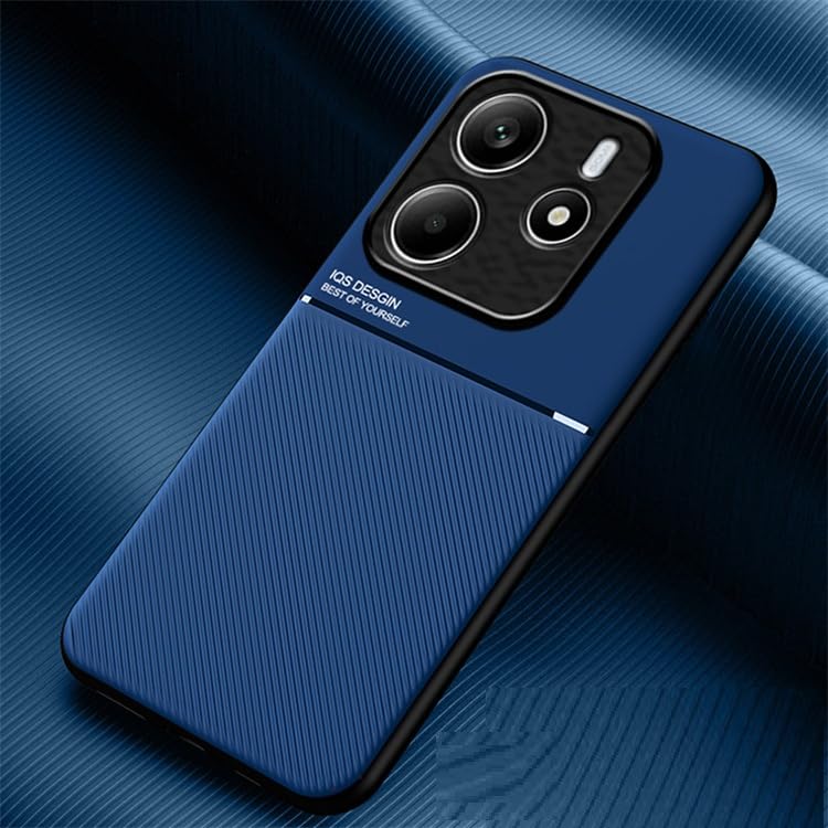 FASCINATION - جراب موبايل كلاسيك متوافق مع ريدمي نوت 14 شبكة الجيل الرابع 4G من السيليكون والبولي يوريثين المقاوم للحرارة والبولي كربونات والجلد مضاد للصدمات ومغناطيسي من فاسينيشن (أزرق)