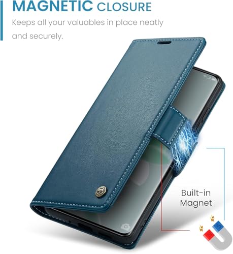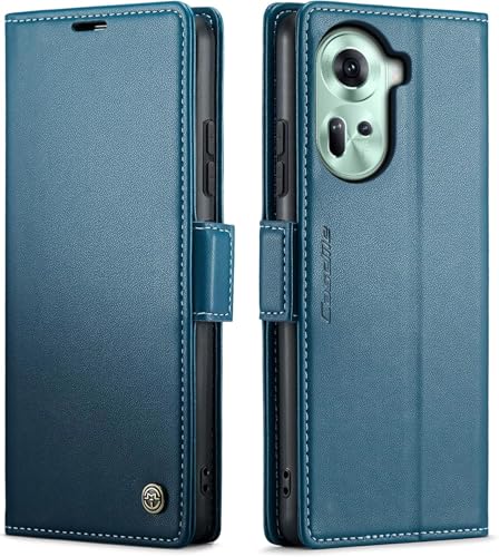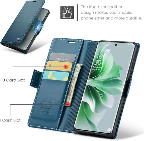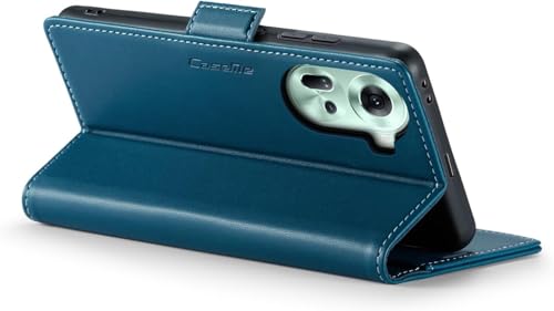 FASCINATION - جراب موبايل متوافق مع رينو 11 شبكة الجيل الخامس 5G عالمي متعدد الوظائف بتصميم افقي قابل للطي من جلد البولي يوريثين فتحة للبطاقات وحامل ومحفظة لسيارة 5G ازرق منقلب